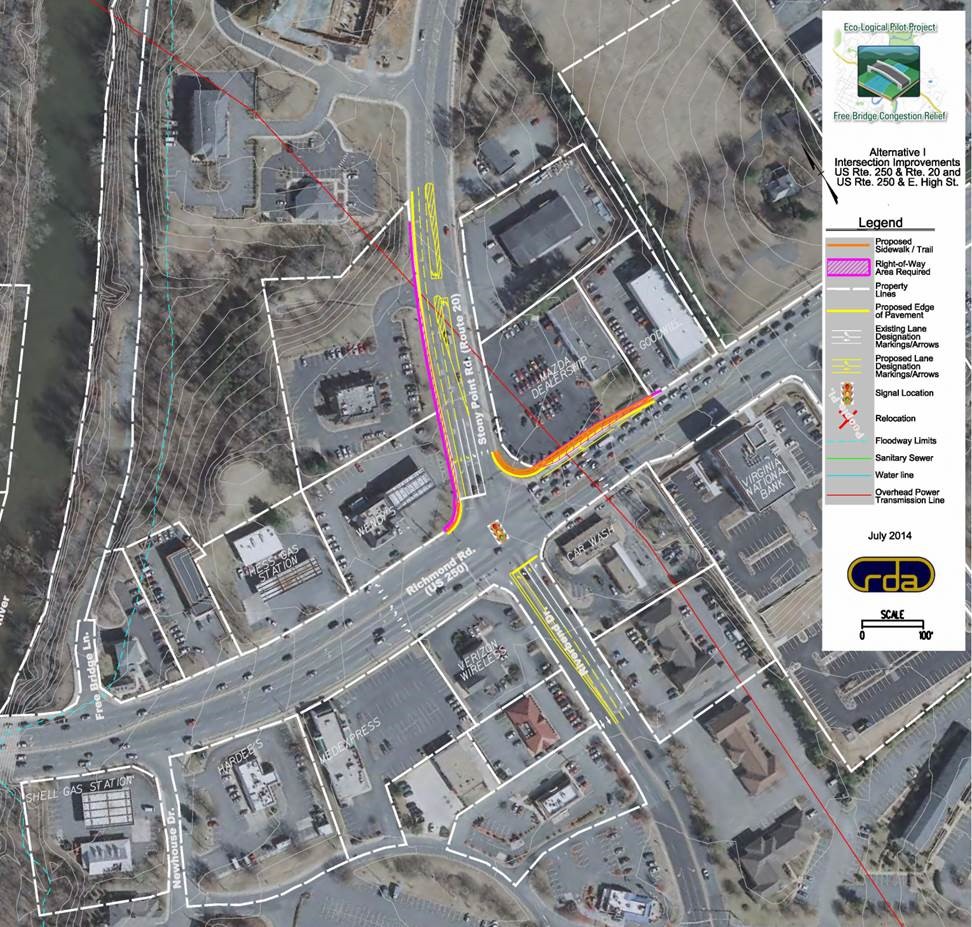One potential project would see improvements at the intersection of Route 20 and U.S. 250 just to east of Free Bridge.