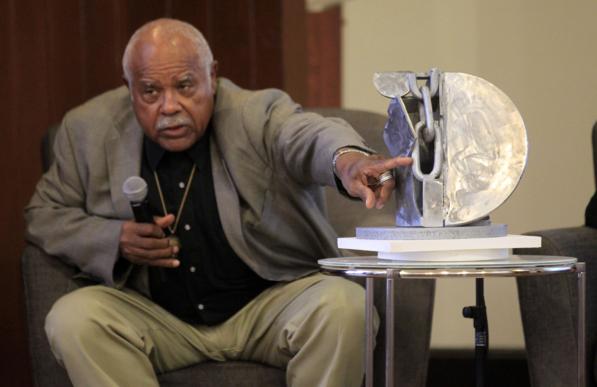 While the Jefferson School remains, Charlottesville’s largely African-American neighborhoods of Vinegar Hill and Garrett were razed in the 1960s in the name of urban renewal. New York-based sculptor Melvin Edwards has been commissioned to create the monument to the areas, and in 2014 he visited Charlottesville to share his design.